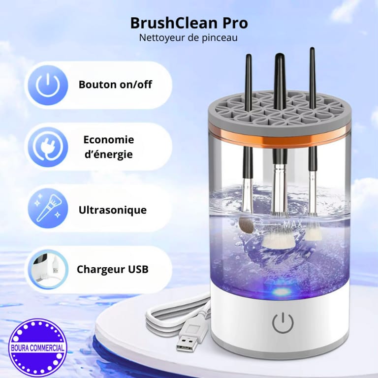 BrushClean Pro est sélectionné par Boura-Commercial, votre boutique de produits innovants à Conakry, pour allier beauté, hygiène et praticité au quotidien.